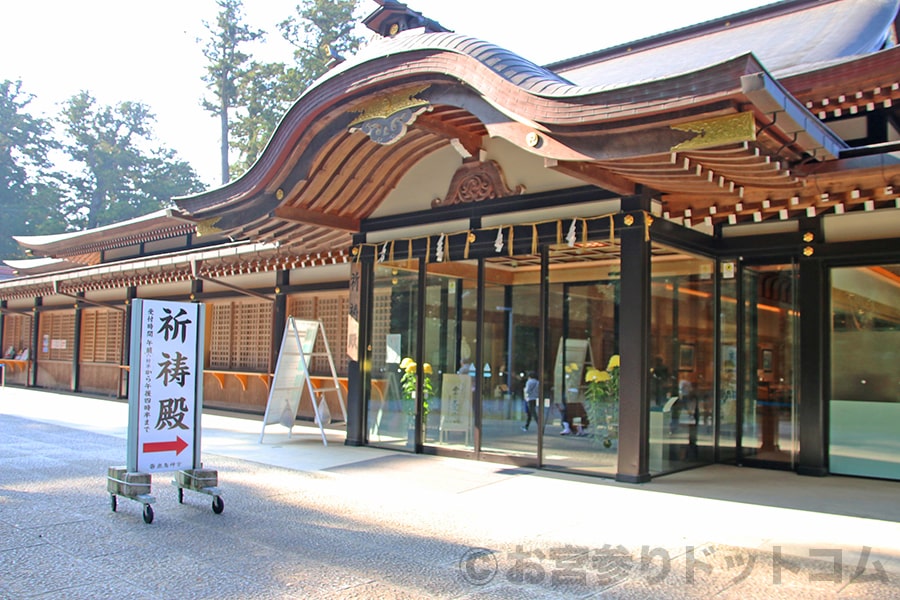 ※鹿島神宮 お宮参り御祈祷の申し込みを行う御祈祷受付のある祈祷殿の様子|画像提供:お宮参りドットコム