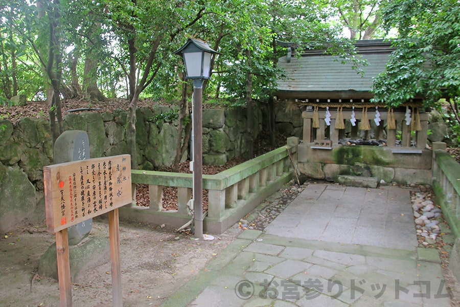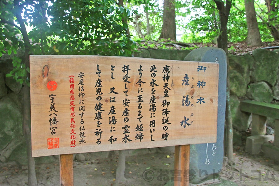 宇美八幡宮 御神水 産湯水 案内看板の様子