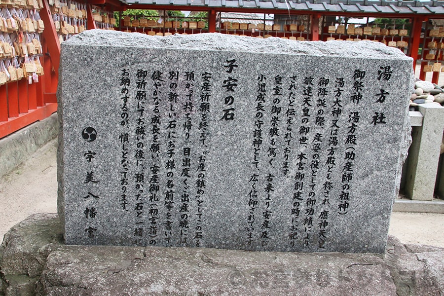 宇美八幡宮 湯方神社 子安の石についての案内石碑の様子