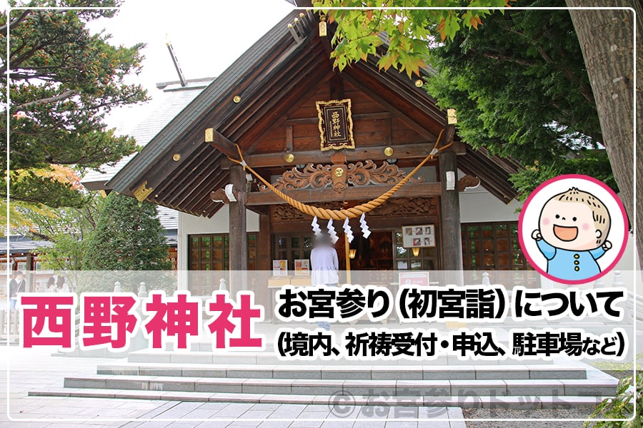 西野神社のお宮参り詳細についてお伝えします。祈祷の受付場所から申込方法や祈祷の場所、待ち合いスペースや駐車場についてなど、西野神社でのお宮参り当日におさえておきたいことなどお伝えします。