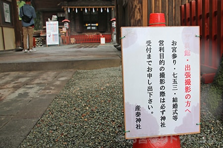 産泰神社 境内出張撮影に関しての案内看板の様子