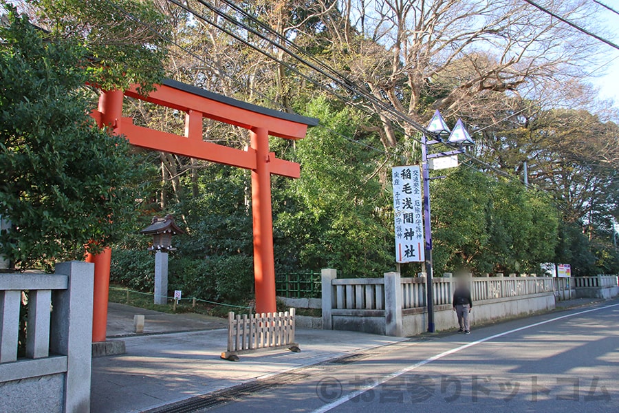 稲毛浅間神社は境内入口が複数あり、こちらは稲毛駅、京成稲毛駅から徒歩で向かった場合の最初に目にする入口と鳥居です。