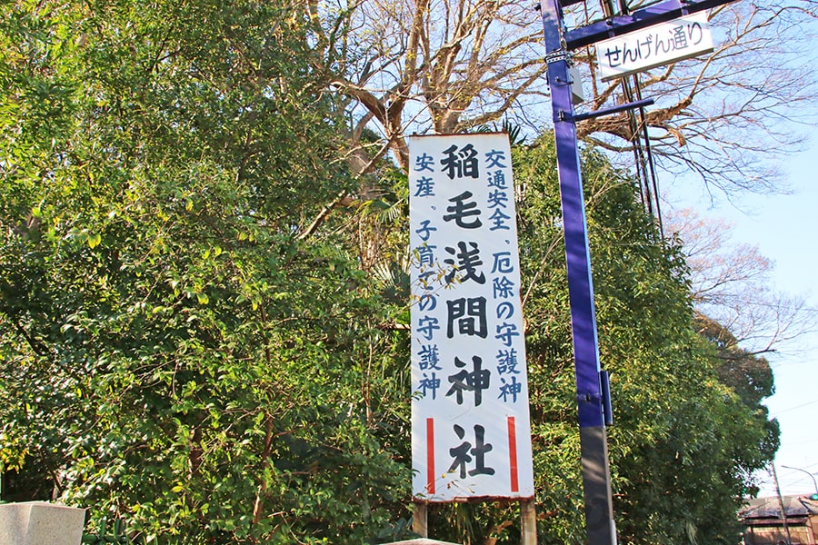 稲毛浅間神社 せんげん通り沿いに掲げられた看板の様子