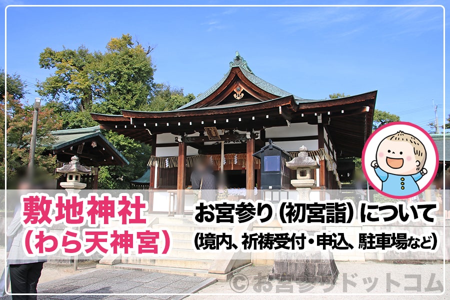 敷地神社(わら天神宮)のお宮参り詳細についてお伝えします。祈祷の受付場所から申込方法や祈祷の場所、待ち合いスペースや駐車場についてなど、敷地神社(わら天神宮)でのお宮参り当日におさえておきたいことなどお伝えします。