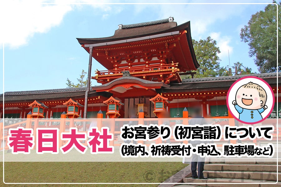 春日大社のお宮参り詳細についてお伝えします。祈祷の受付場所から申込方法や祈祷の場所、待ち合いスペースや駐車場についてなど、春日大社でのお宮参り当日におさえておきたいことなどお伝えします。