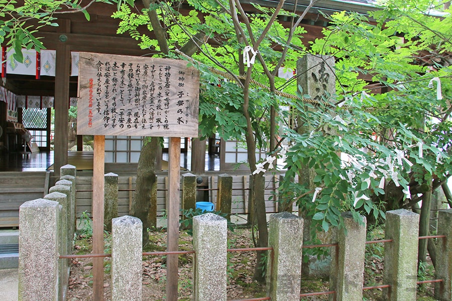 産湯水(うぶゆのみず)についての案内看板です。安産祈願の際にお世話になったママさんも多いのではないでしょうか。