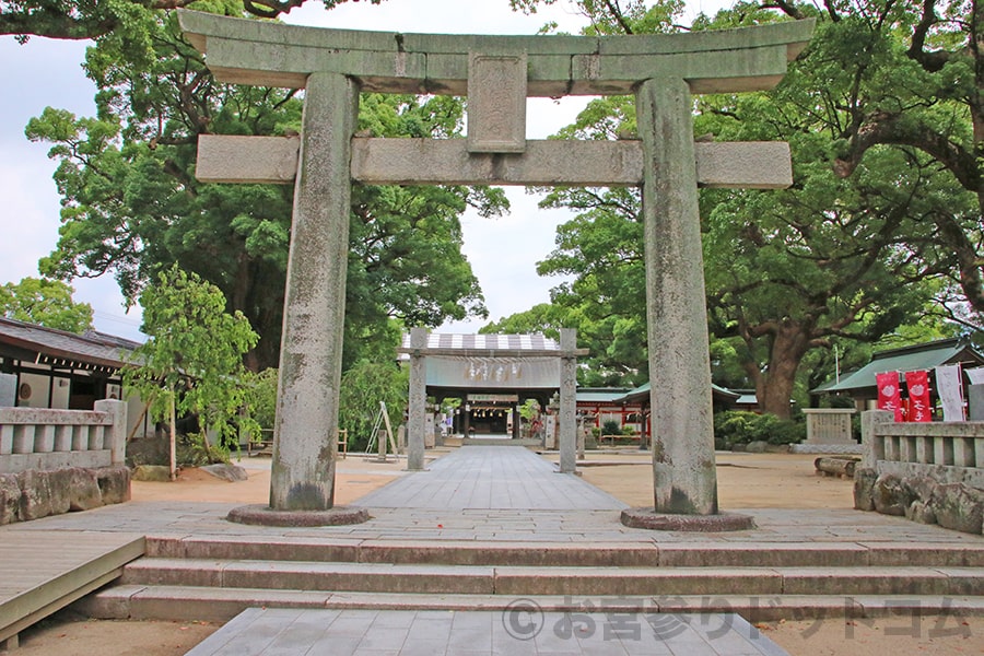宇美八幡宮 境内入口の鳥居(昭和の鳥居)と社号標の様子