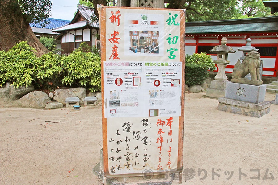 宇美八幡宮 初宮(お宮参り)ご祈願の案内掲示の様子